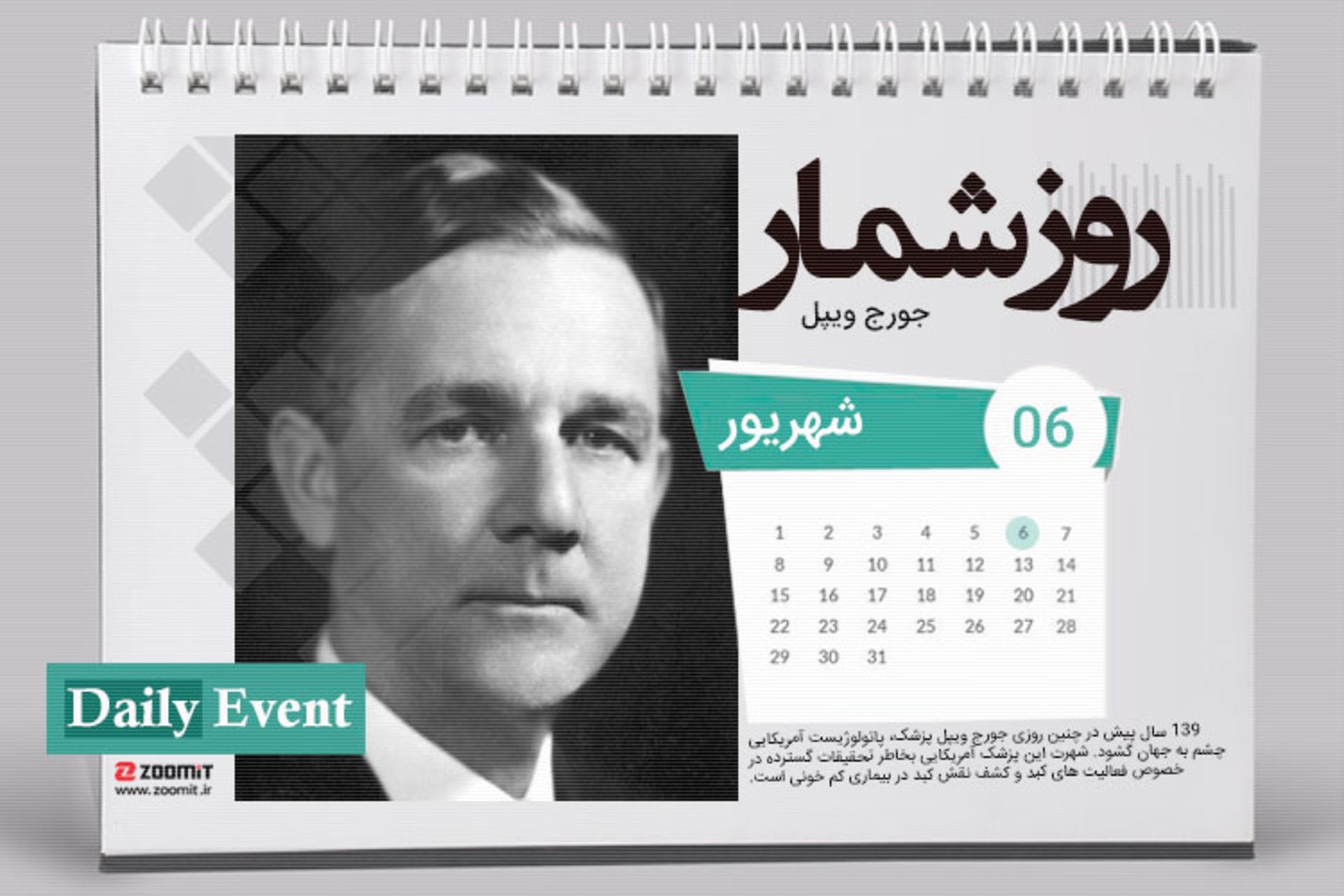 ۱۳۹ سال پیش در چنین روزی (۲۸ آگوست سال ۱۸۷۸)، جورج هویت ویپل در شهر اشلند ایالت نیو همپشایر متولد شد. پدر و پدربزرگ جورج، هر دو پزشک بودند و او در ادامه راه آنها، در سال ۱۹۰۰ توانست از دانشگاه ییل لیسانس خود را دریافت کند و در همان سال وارد دانشگاه پزشکی جان هاپکینز شد. جورج ویپل در سال ۱۹۰۵ بهعنوان پزشک از دانشگاه جان هاپکینز فارغالتحصیل شد و بعد از آن به دپارتمان پاتولوژی دانشگاه هاپکینز پیوست و تا زمان سفر به پاناما، در این دانشگاه بهعنوان محقق فعالیت میکرد. دکتر ویپل بین سالهای ۱۹۰۷ تا ۱۹۰۸ در پروژه ساخت کانال پاناما بهعنوان پاتولوژیست در بیمارستان نظامی آنکان مشغول به کار بود. بعد از این دوره، مجددا به دانشگاه جان هاپکینز بازگشت و تا سال ۱۹۱۴ در دانشگاه هاپکینز بهعنوان استاد پاتولوژی مشغول به تدریس بود. در سال ۱۹۱۴ دکتر ویپل بهعنوان استاد بخش تحقیقات دارویی و مدیر بخش بنیاد هوپر در تحقیقات دارویی دانشگاه کالیفرنیا انتخاب شد.