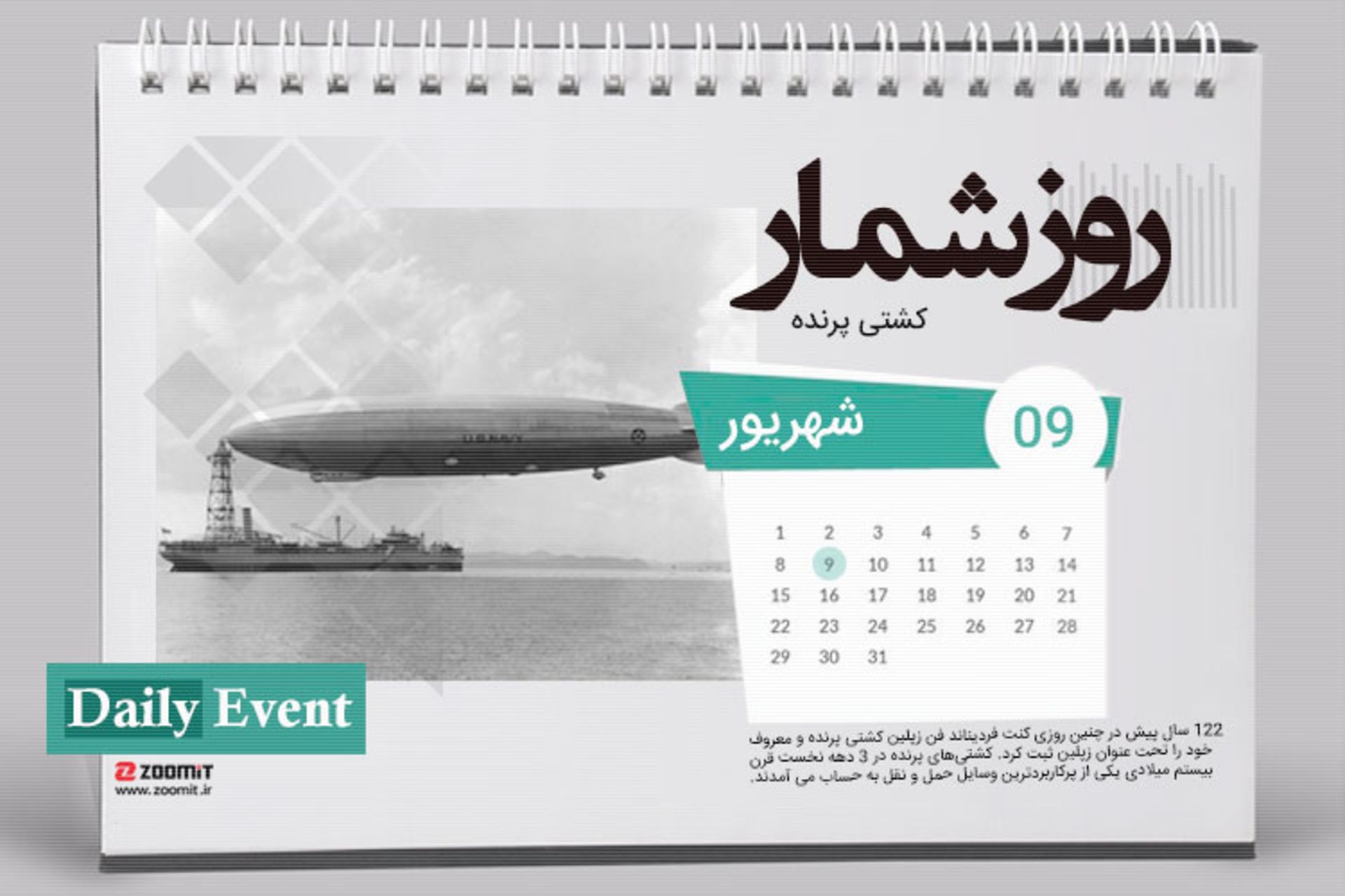 9 شهریور: ثبت اختراع زپلین ، کشتی پرنده