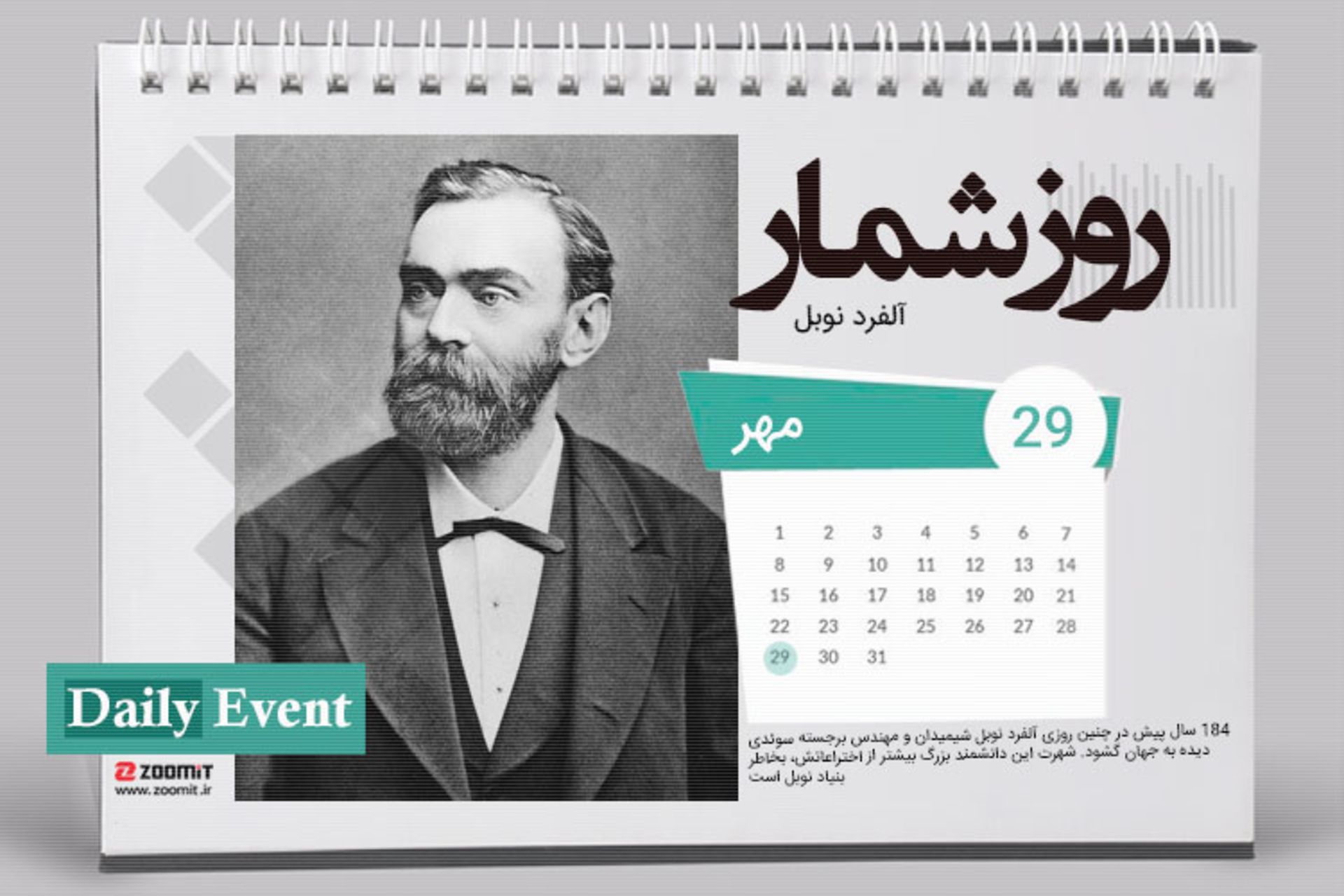 ۲۹ مهر: زادروز آلفرد نوبل شیمیدان و مهندس سرشناس سوئدی