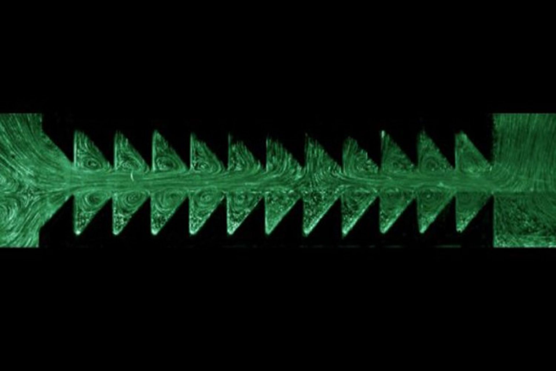 پمپ جدید از دو پنل روبروی هم تشکیل شده که فاصلهای در بین آنها وجود دارد. این فاصله دو محفظهی آب را در دو سوی این دستگاه به هم متصل میکند. در سطح داخلی هر کدام از این پنلهای پلاستیکی نیز 12 دندانهی اره مانند نامتقارن قرار گرفته که هر یک به جای شکل دادن یک مثلث متساوی الساقین، کمی شیبدار شدهاند.