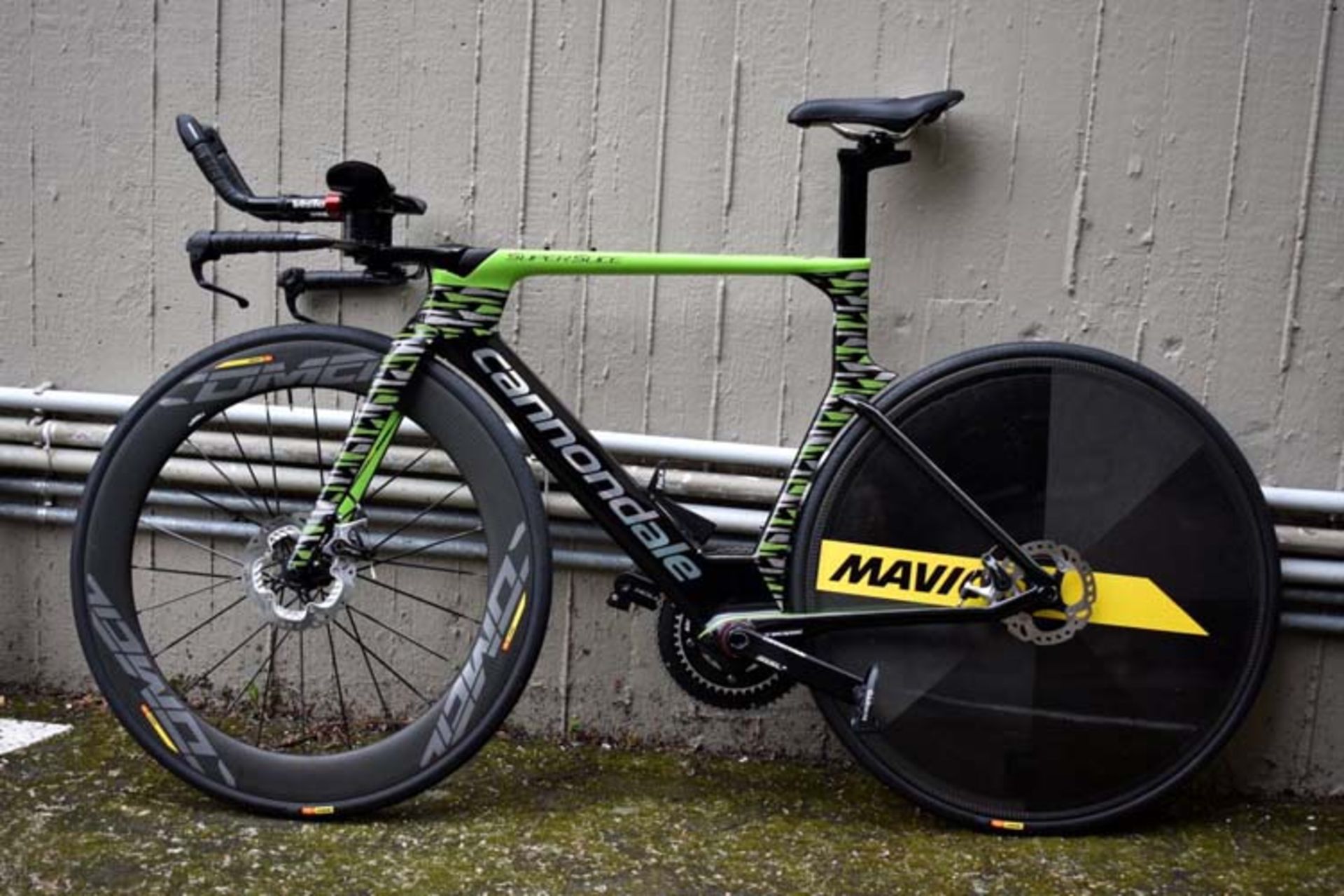 دوچرخهی Cannondale Superslice را در تصویر پایین مشاهده میکنید که برای اولین بار از ترمزهای دیسکی در یک دوچرخه طی رقابتهای زمان گیری تور دو فرانس استفاده شده است.