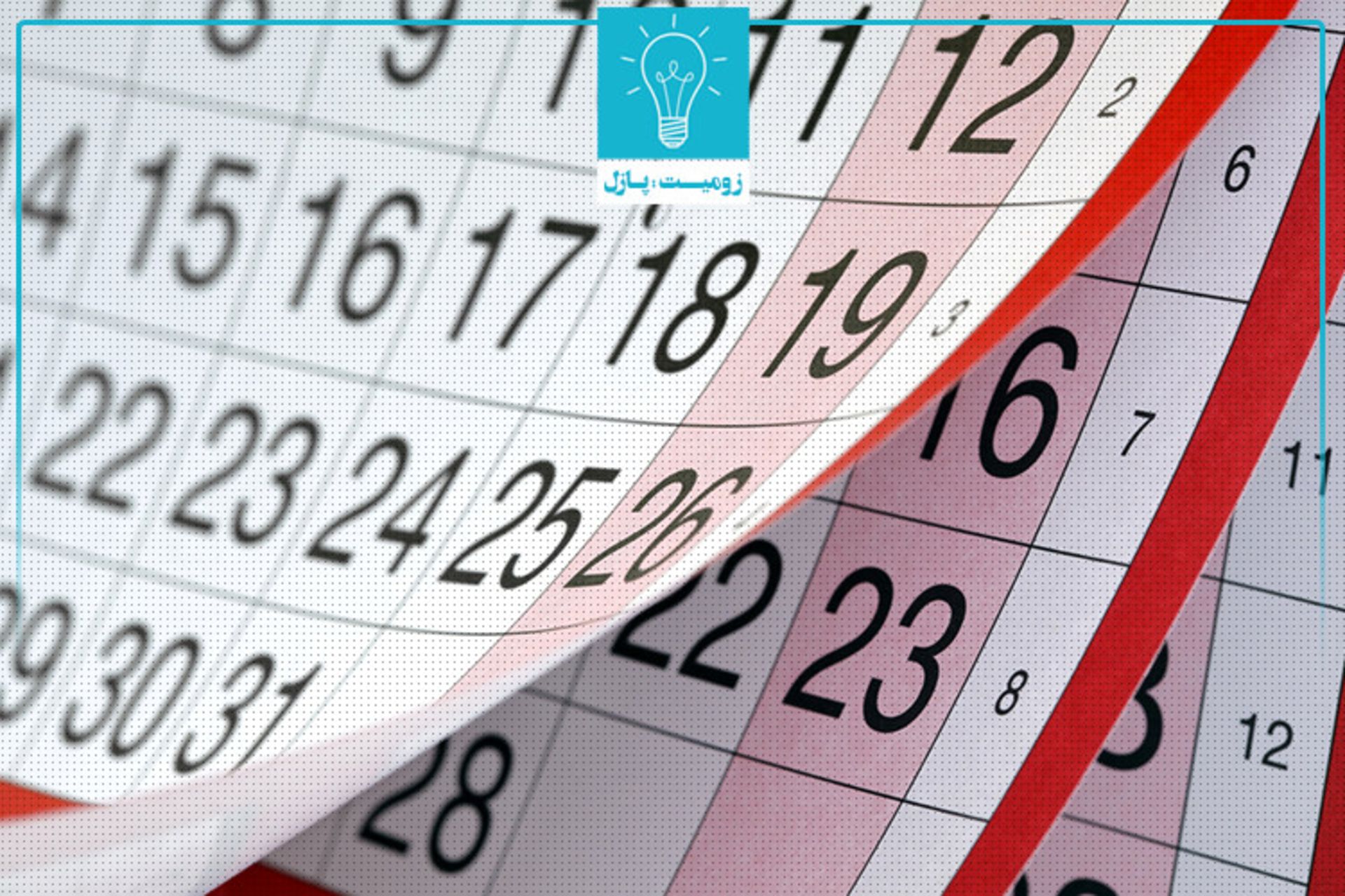 شنبه = ۴۱۵۱۰یکشنبه = ۶۲۷۱۵دوشنبه = ۶۳۵۱۴سهشنبه = ۶۴۵۱۵چهارشنبه = ۸۵۸۲۱پنجشنبه = ۷۶۱۰۲۳